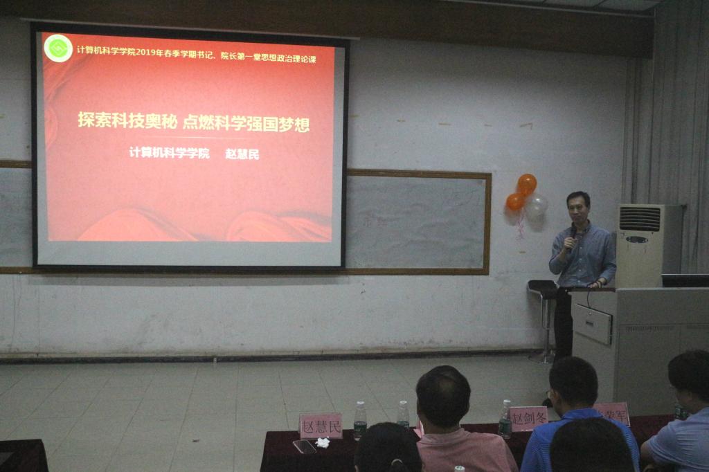 根据《广东省教育厅关于做好2019年春季学期高公司党委书记、董事长和院(系)党组织书记、经理(系主任)上第一堂思想政治理论课工作的通知》(粤教思函〔2019〕10号)要求,6月6日,云顶国际vip.888经理赵慧民在实验楼107教室讲授了春季学期思政第一课。公司领导班子、各系主任、辅导员以及各班级员工干部代表共200余人一起聆听了此次讲课。