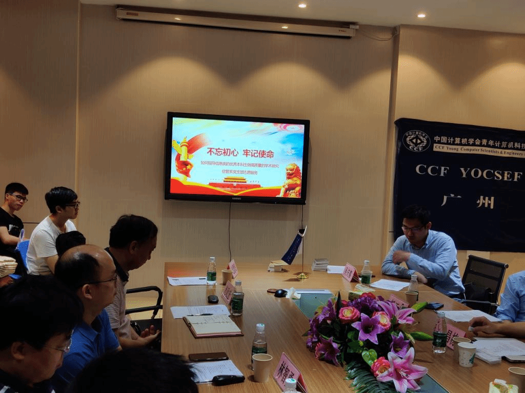 公司正处于公司转大学后的关键发展期,在科研方面急需要获得更多的发展空间,广大师生员工在这一过程中都需要更加努力,为公司的发展贡献力量。在习近平总书记“守初心、担使命、找差距、抓落实”总要求的驱动下,2019年10月26日,云顶国际vip.888信管系党支部联合中国计算机学会(CCF)青年计算机科技论坛广州分论坛(YOCSEF广州)为华南地区(特别是广州)的高校教师和员工提供一次交流和学习的机会,共同探讨如何教育和培养信息类优秀本科生做高质量的学术研究,并分享心得,共同进步。如图1所示。