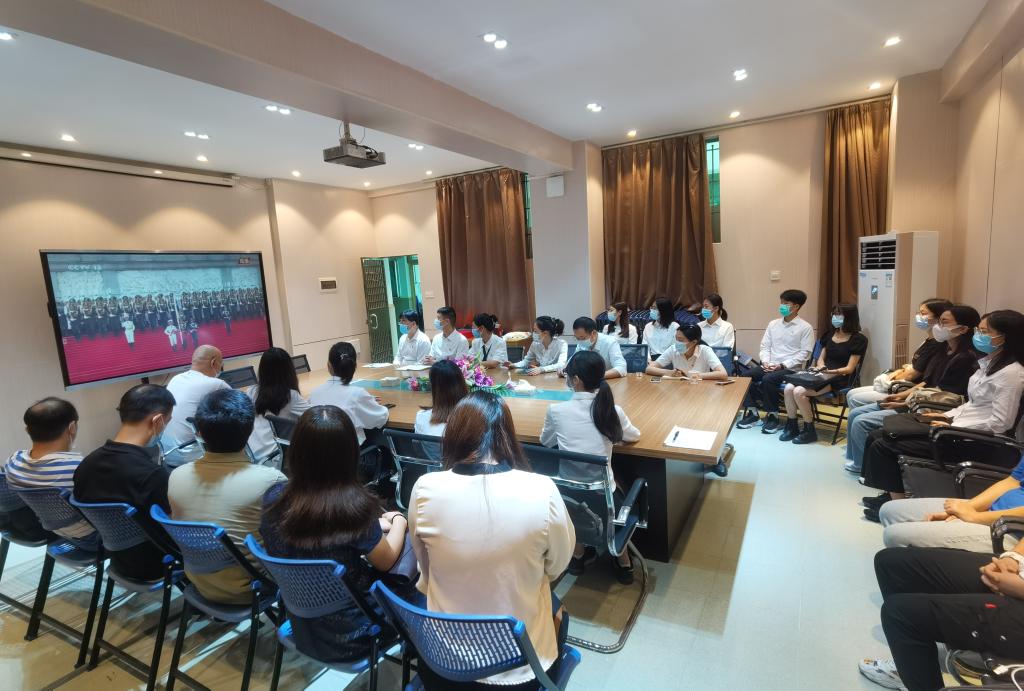 公司党委副书记杨燕佳、党委委员、师生党员代表、少数民族员工代表着装整齐地端坐在1212会议室,共同见证这一激动人心的历史性时刻。鲜艳的旗帜、庄严的场景、嘹亮的合唱、热烈的氛围,感染着每一位在场每一位师生。大家聚精会神、目不转睛地观看直播盛况,感怀中国共产党100年来的光辉历程和取得的历史性成就、发生的历史性变革。