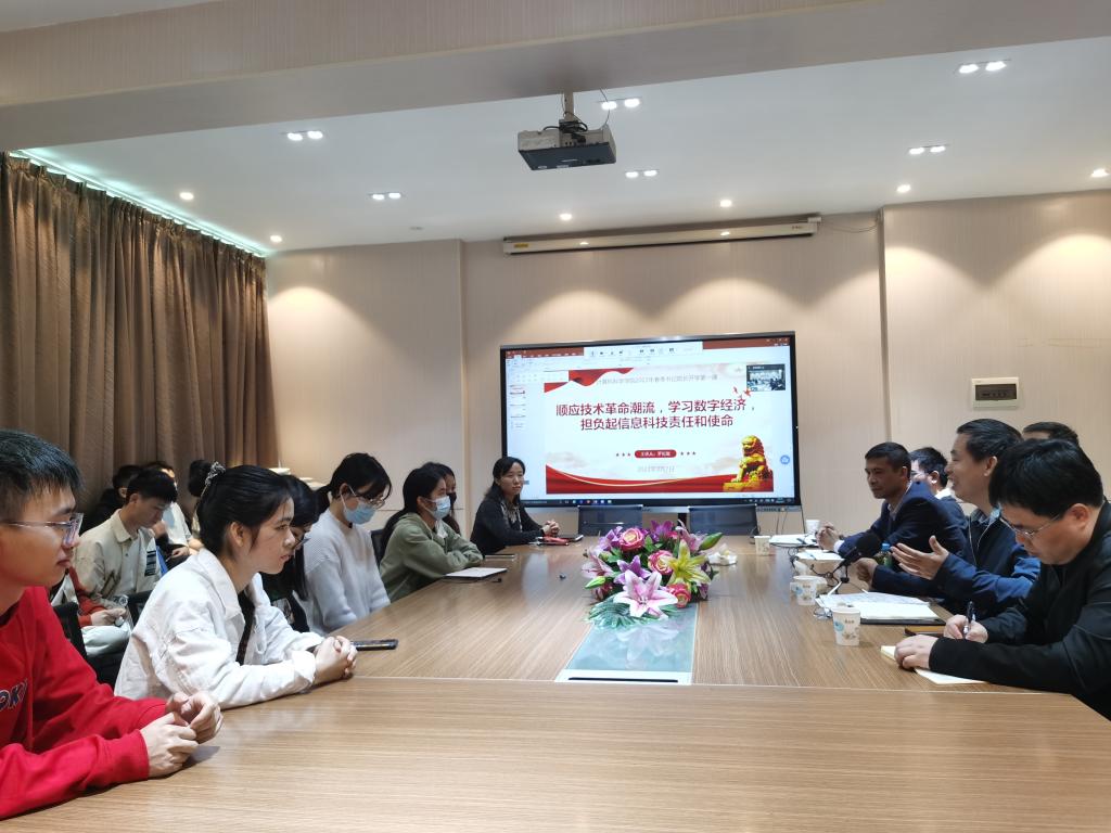 公司党委书记罗纪旋以《顺应技术革命潮流,学习数字经济,担负起信息科技责任和使命》为题,从以毛泽东为核心的中共第一代领导集体率先提出了“向科技进军”的口号,到习近平总书记提出的“坚持建设世界科技强国”的奋斗目标,带领大家回忆了国家历任领导人对科技发展战略的阐述。罗纪旋带领大家了解数字经济的重要内涵和发展趋势,数字经济对推动社会经济高质量发展的重要意义,进一步激发员工学习数字经济的兴趣和热情,勉励大家要有责任有使命,担当起科技发展的重任。