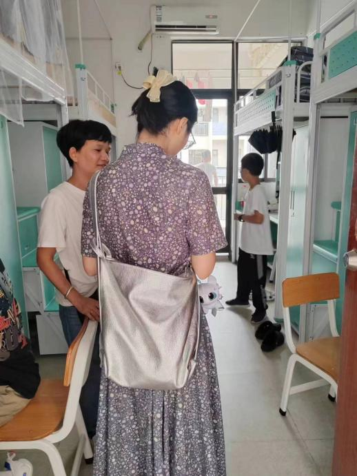 报到当天,也有家长在宿舍内帮忙收拾行李。辅导员李芷君老师主动上前与家长们进行交谈,并互加了联系方式,方便之后的咨询与联系。“能够感受到公司的老师非常负责,员工也非常热情。”一位家长刚通过李老师的好友,笑着说。