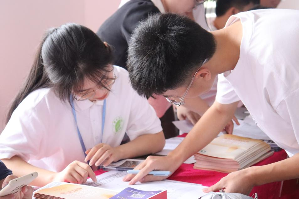 荧光绿的光点从校门连绵至报到区,志愿者们沿路介绍校园风貌、公司办学特色,分享老员工活的点点滴滴。